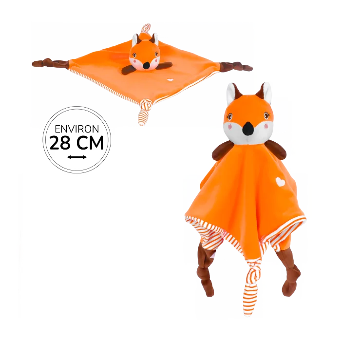 Esprit forêt et douceur assurée avec ce doudou renard qui attire tous les regards ! Format plat ergonomique, nœuds sensoriels aux extrémités, optez pour ce compagnon rassurant et apprécié, qui fait l’unanimité ! Commandez vite ce produit à forte visibilité pour des ventes assurées.