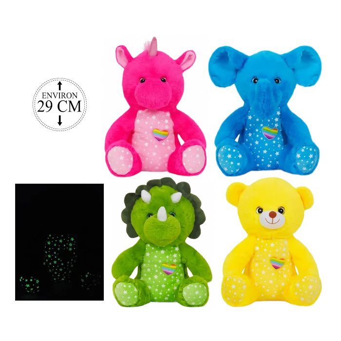MELANGE 16 PELUCHES PHOSPHORESCENTES 29 CM