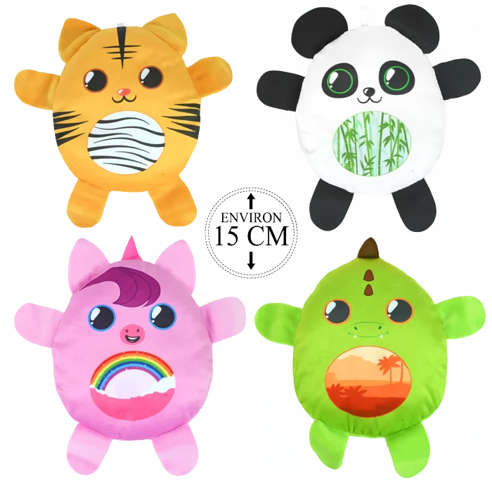 PELUCHE OVALE DECOR FANTAISIE 4ASS 15CM