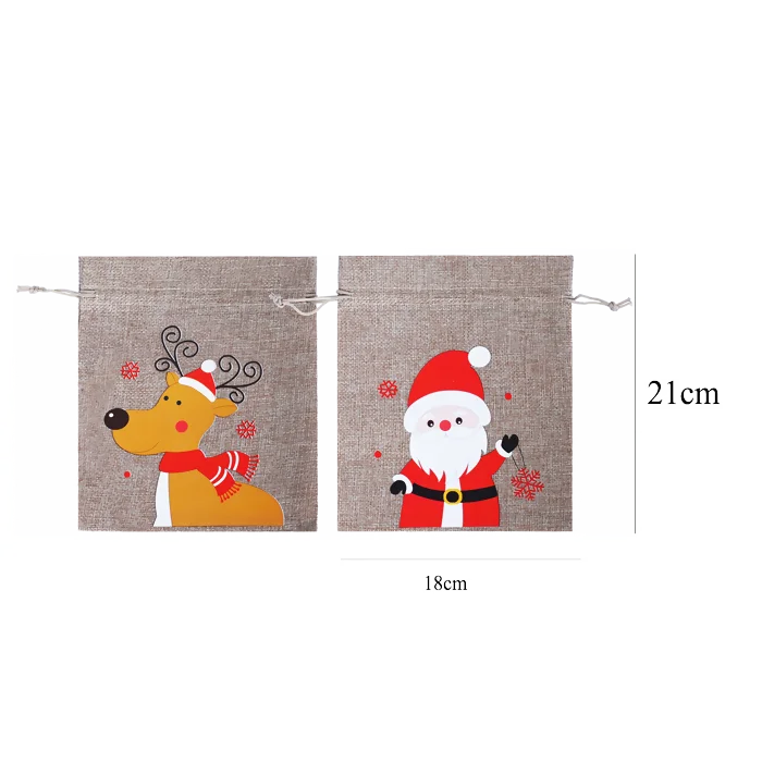 POCHON EFFET LIN DECOR NOEL 2ASS 18*21CM