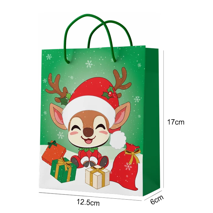 SAC PAPIER 17*12,5*6cm VERT AVEC RENNE