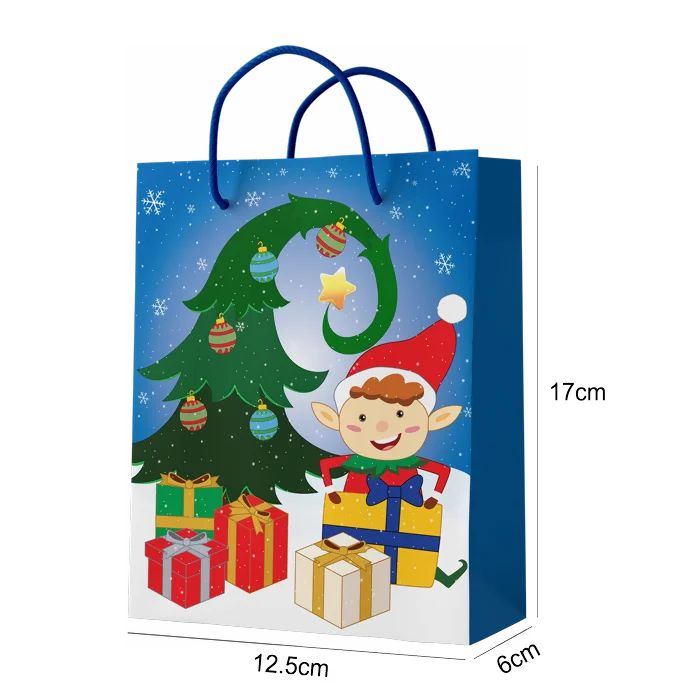 SAC PAPIER 22,5*19*10cm LUTIN AVEC SAPIN ET CADEAUX