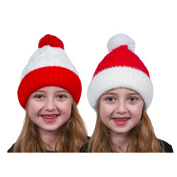 BONNET MAILLE ROUGE ET BLANC ENFANT 2ASS