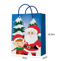 * Caractéristiques produit : - Sac fond bleu - Décor Père Noël avec lutin - Dimension : 22.5*19*10cm